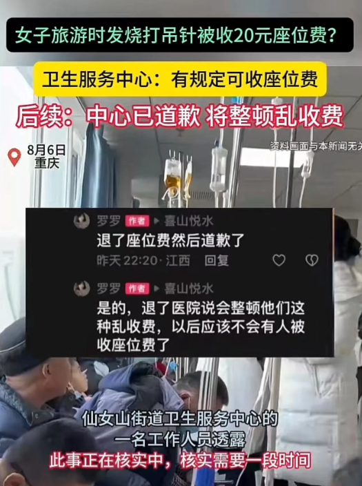 医院闹大了!重庆,女子在社区卫生所打吊瓶,收费单显示居然有高达20块的“天价”座位费!女子匪夷所思把收费单上传到了网上,当地医院却依旧表示是合理收费,网友不淡定了