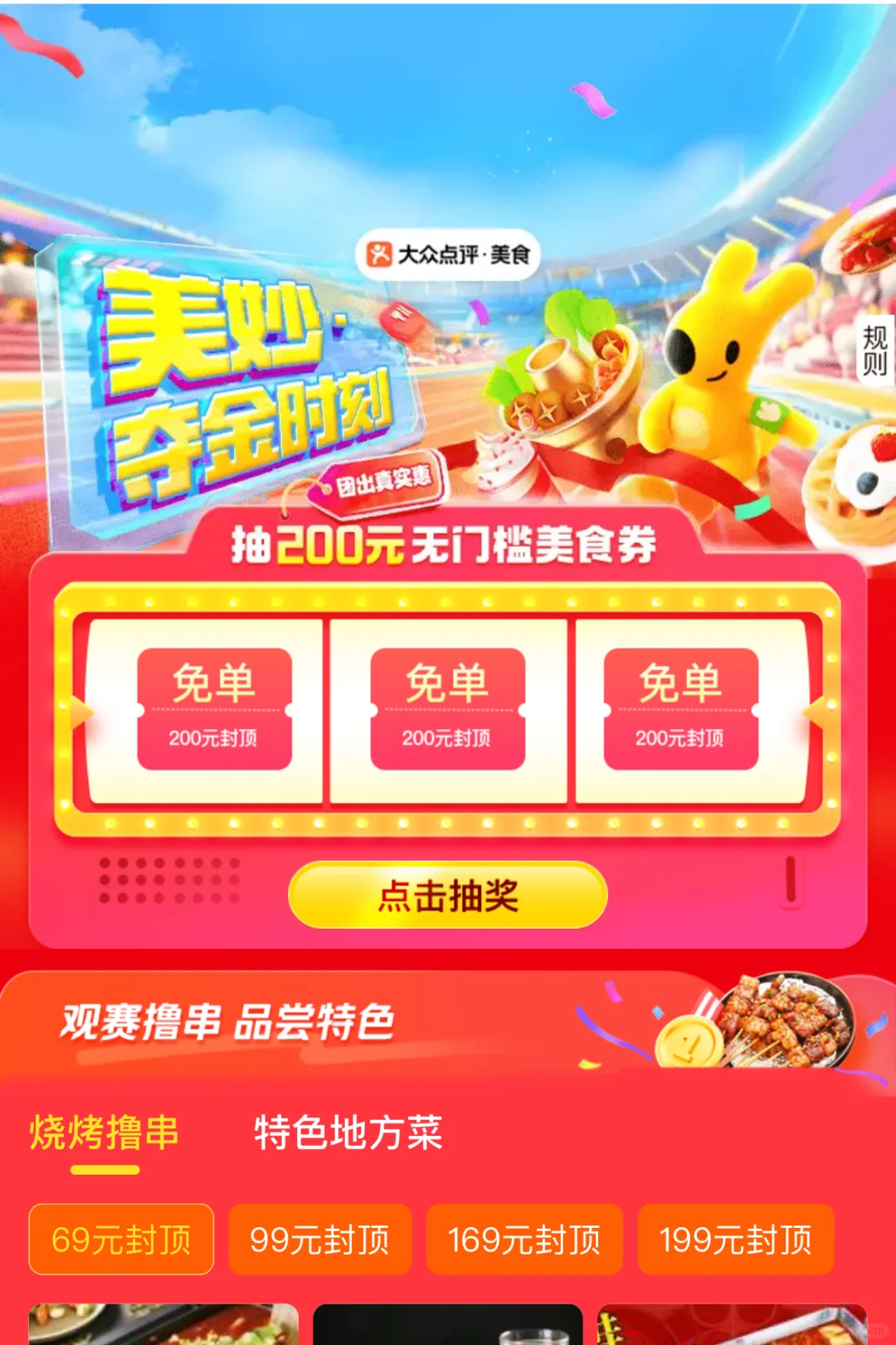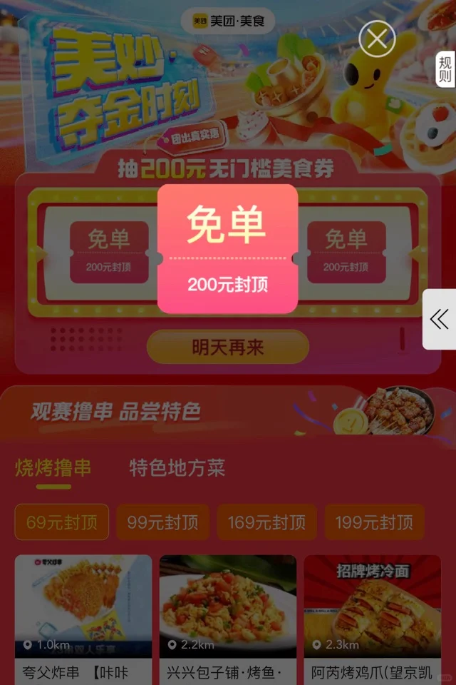 美团奥☁️期间(8.5-8.11期间),可以抽取无门槛美食红包,金额高达200R,红包仅限到店使用,但是参与商家真的超多~~