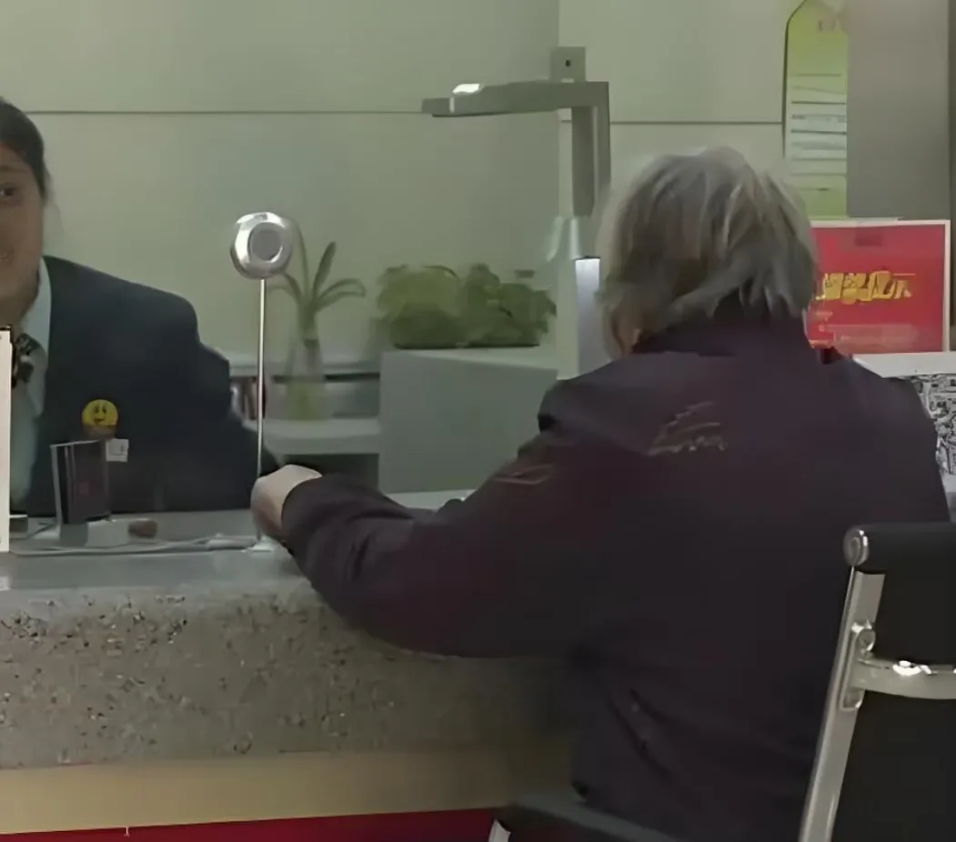 她抽号排队,看人家小年轻直接在自动取款机取钱,她很羡慕,可她一把年纪了,不会操作那玩意,反正没啥事,排队等着呗。