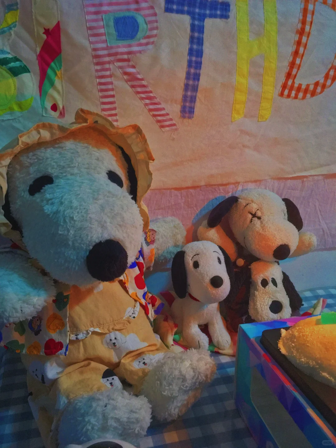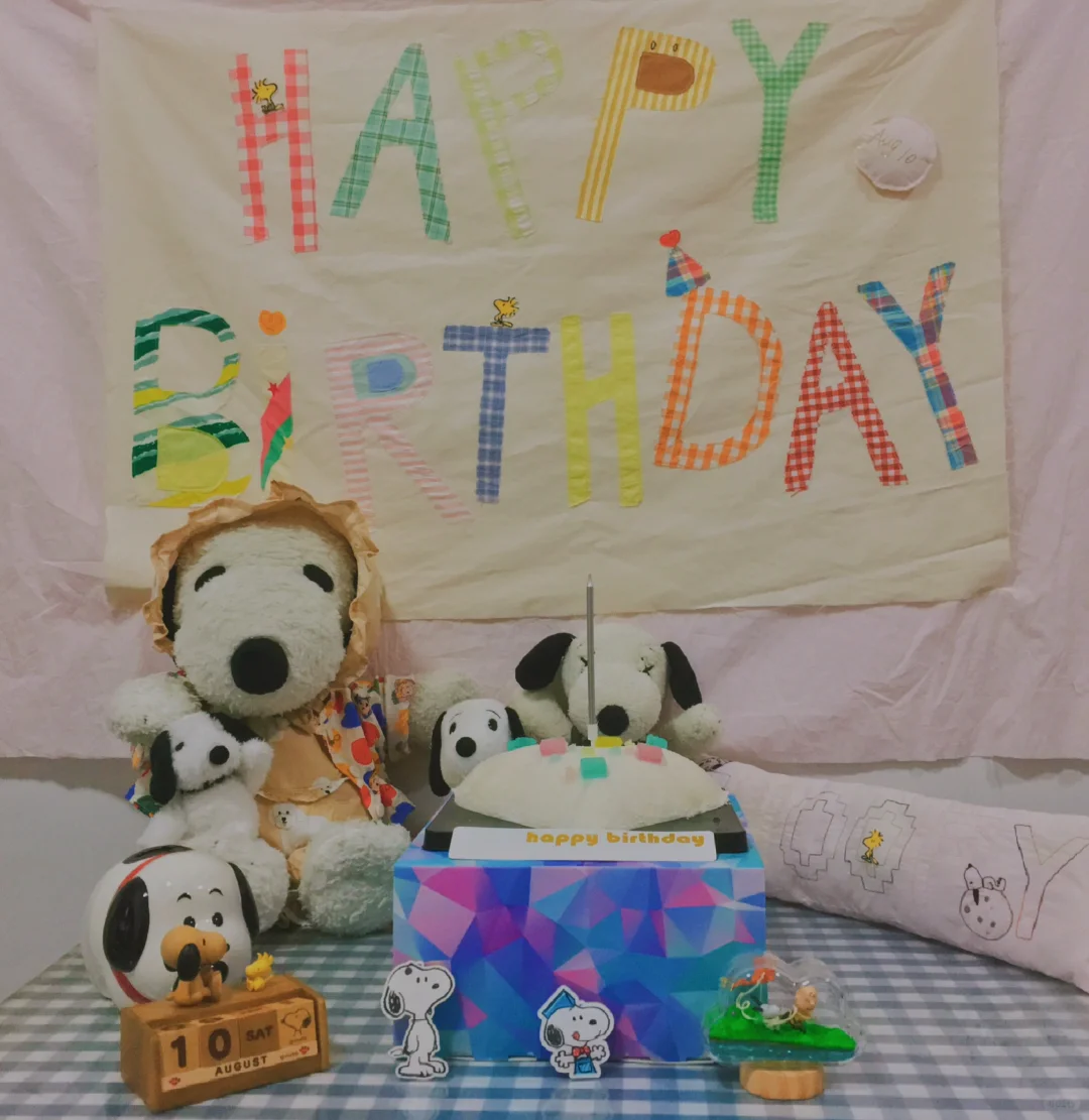 昨天给家里的史努比们开了个生日会,有蛋糕🍰、有横幅🪧、有应援棒🎈,还有一些装饰品🎀。