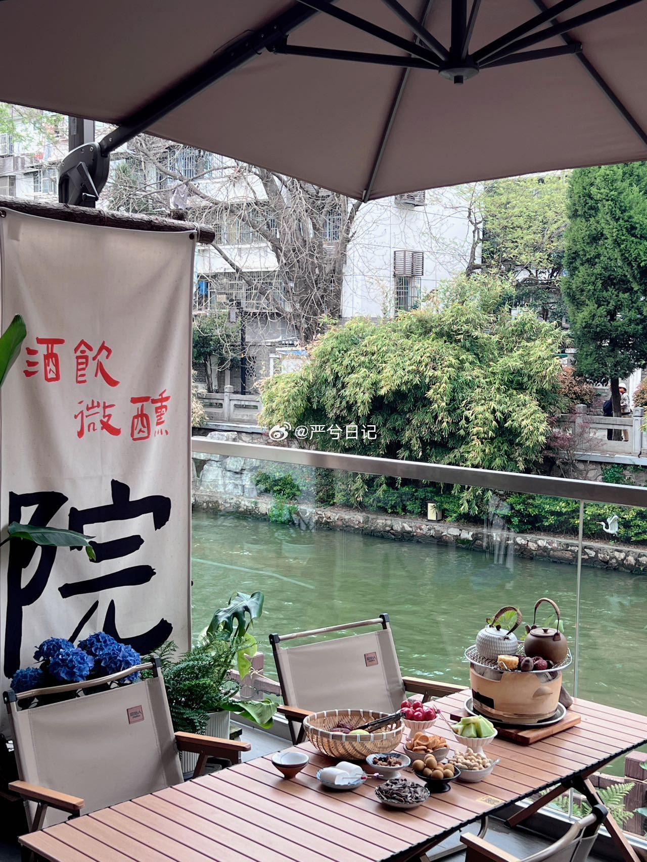 🍵依傍在秦淮河旁,可以在有河小院预定一份围炉煮茶,看白墙绿水,游船荡荡,围炉煮茶,不负青春好时光。
