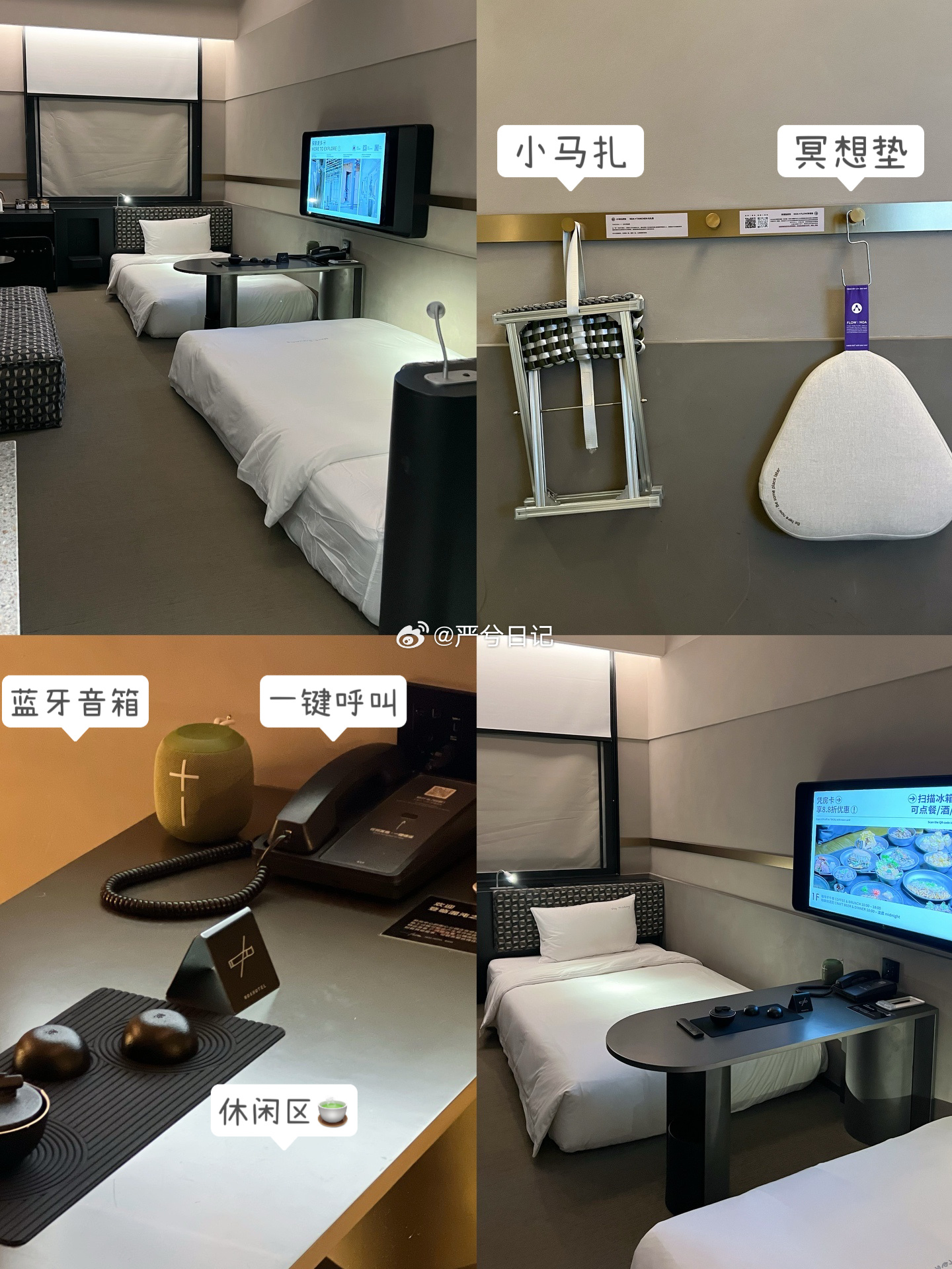 ❗一整天待在房间,一点都不会无趣~🛏床的舒适度超出了我的预期,窗帘智能开关,最主要是床头有阅读灯和无线充~满足自己用灯用电需求的同时不会影响到同伴,房间内很有创意地配备了冥想垫,小马扎和蓝牙音箱,随时自我反省在音乐下放空自己,每处细节都能带给登临者新的灵感。