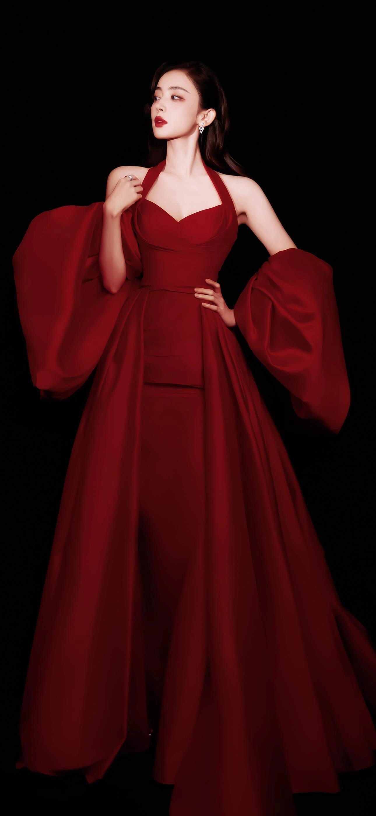 正红能hold住是本事,但这散摆礼服,是不是有点儿像行走的番茄酱?