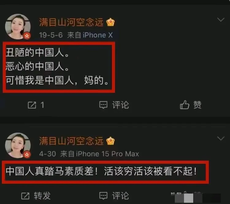 她的行为同那个袁浩然如出一辙,都是体育界的,都是崇洋媚外,一样的痛恨国家和人民,同样毫无底线、毫无节制的发表反动言论,同样很多年未发现?我们有关部门不需要反思吗?