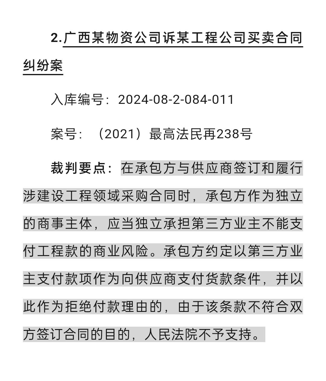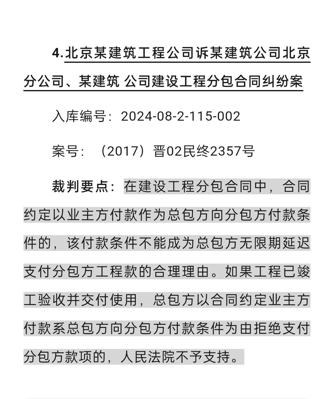 建工合同纠纷最新入库案例。建工合同纠纷最新入库案例