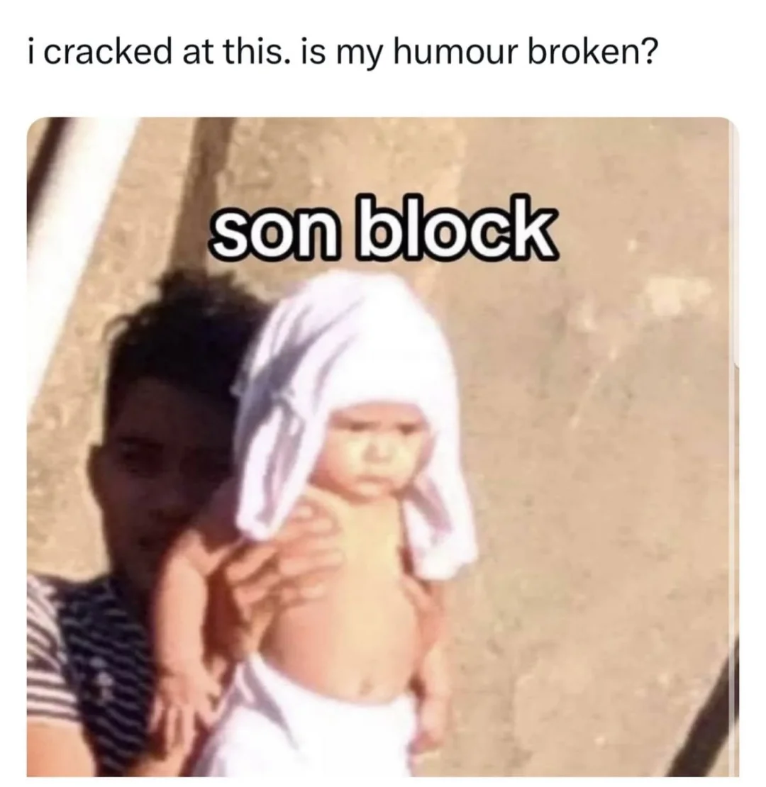 13)son block:前面孩子为自己遮阳,这个词似sunblock(防晒霜);