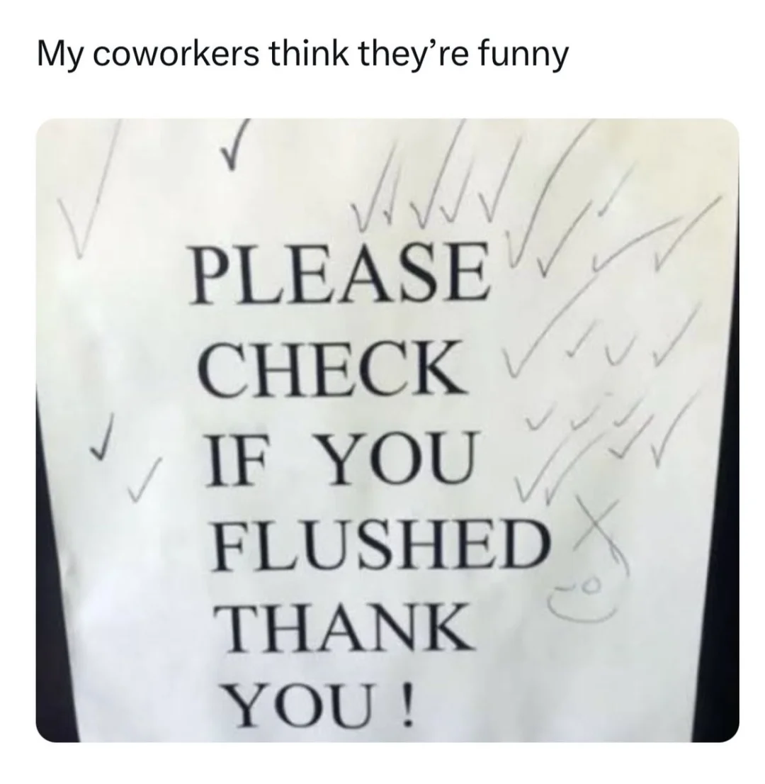 check双关,指“检查”和“打勾”,打勾人认为:如果你冲了水,请打勾;