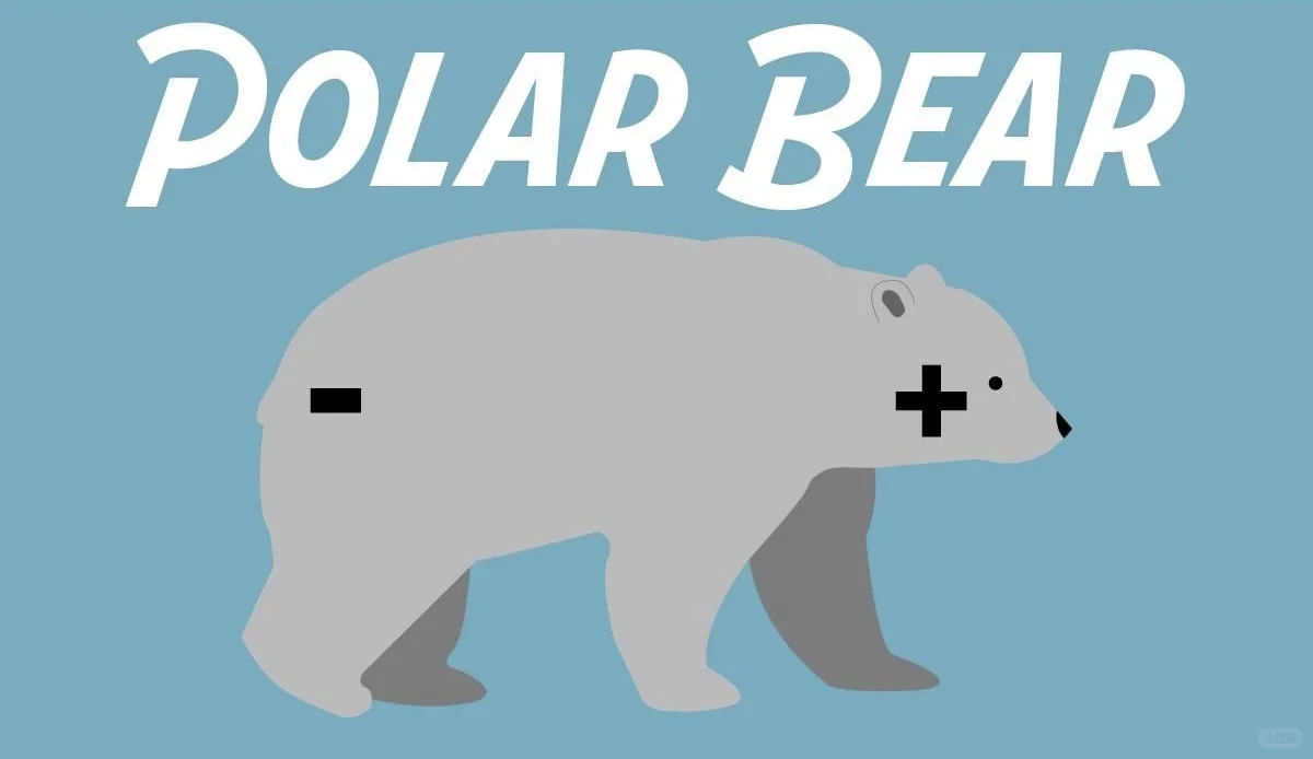 5)北极熊,polar还指化学里的极性分子,熊身分别被标注正、负电;