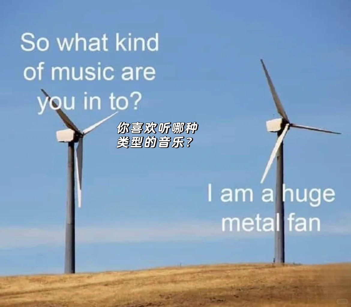 10)huge mental fan双关:金属音乐忠实粉/(图风车的)巨型金属风叶片;