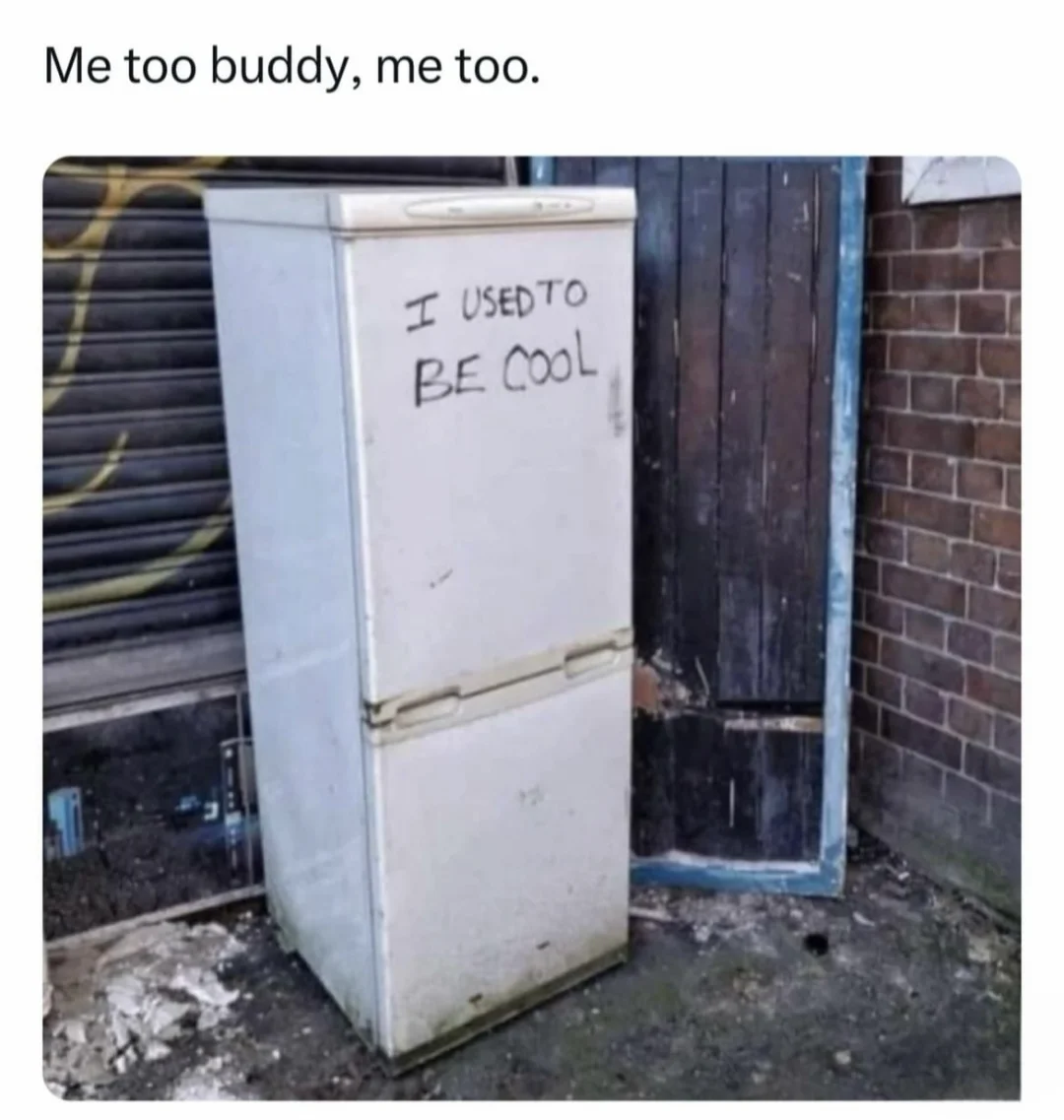 15)冰箱:我以前很冷的(能制冷);双关:我以前是很酷的;