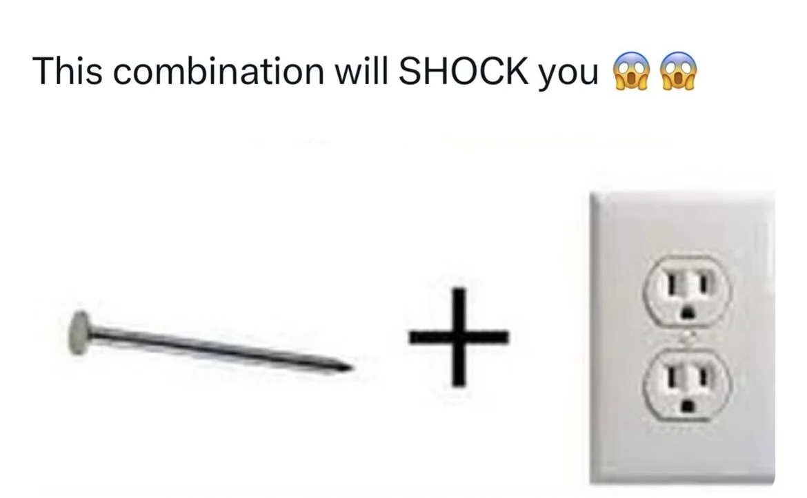 4)钉子+插孔组合到一起会把你震惊到,双关:这两个组合到一起会让你触电;