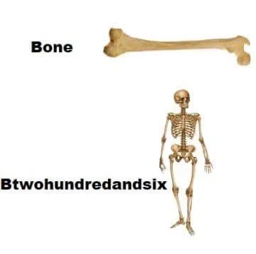 3)Bone拆成b+one (右图“一根”骨),下图骨骼模型,成年人共206根骨头;