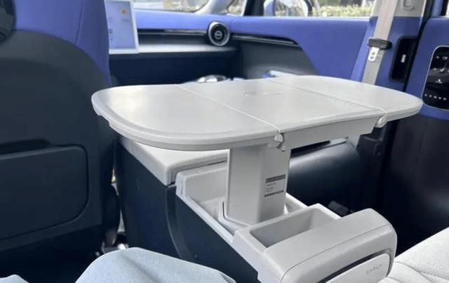 这个可移动的吧台,让主副驾驶之间贯通。当主驾驶不方便上下车时,一键后移吧台,就可以无障碍地从副驾驶进出,不再需要费用爬出。