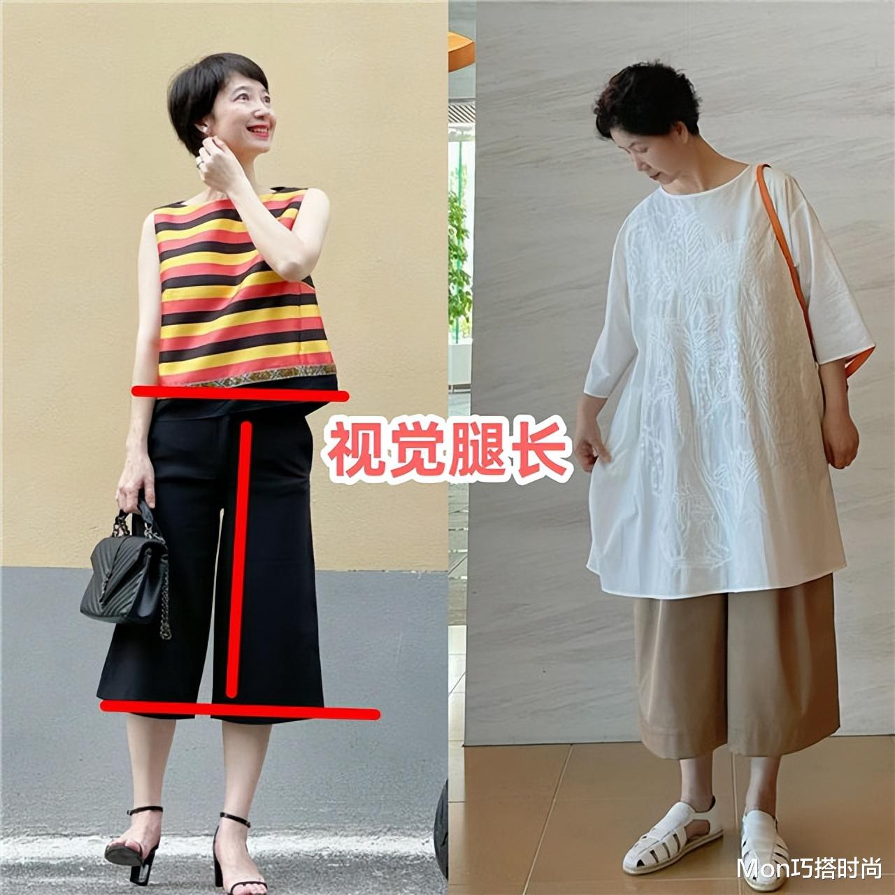选择裤子时,切记不要选择刚好过膝盖的七分裤,这种长度恰好将膝盖这个关节点暴露出来,打断了腿部线条的流畅性,分分钟就会让你变成视觉上的"小短腿",严重缩短了腿部比例;相比之下,九分裤才是裤长中的王者,它能够展现出脚踝的纤细,同时又不会破坏整体腿部线条。