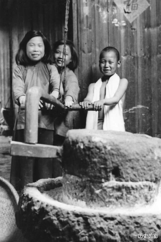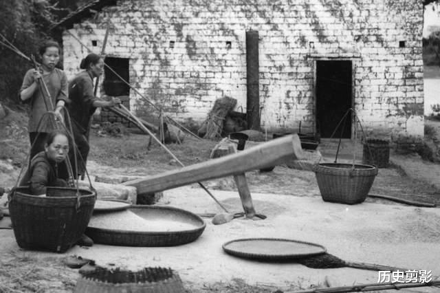 那时候的桂林,还是典型的农耕社会。山民们在层层梯田里种稻子,靠天吃饭。舂米、筛谷、挑担,是家家户户的日常。男人用扁担挑着孩子和货物走在石板路上,女人围着石磨推磨,孩子们也会搭把手帮忙,日子虽清苦,却透着一股踏实的烟火气。