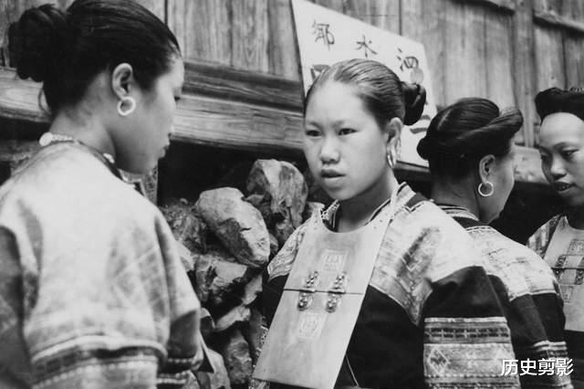 桂林西北的山里,住着壮、瑶、苗等多个民族。照片里的姑娘们戴着银饰、穿着织锦衣裳,银项圈和绣纹是她们最显眼的标识。这些服饰不仅是装饰,更是代代相传的文化记忆。当时的少数民族还保留着乡老、寨老的传统治理方式,和汉族村落的生活习惯既有交融,又保持着自己的特色。