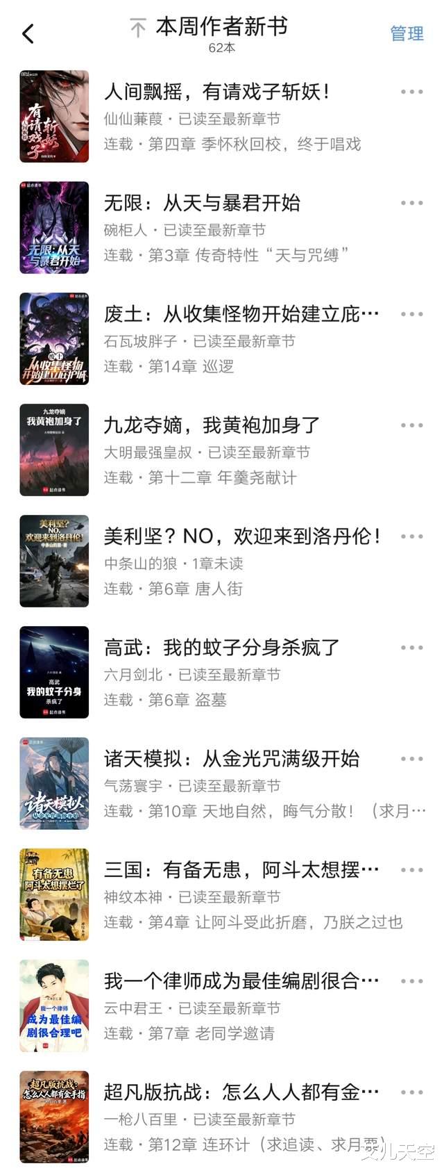 汇总一下年后第一周起点作者开新书的情况,不得不说很热闹。