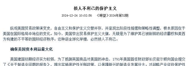 《瞭望》2024年第52期:2024-12-24《损人不利己的保护主义》