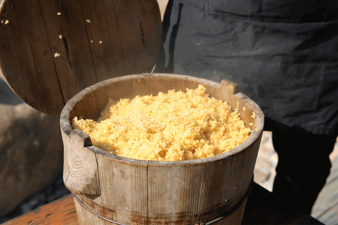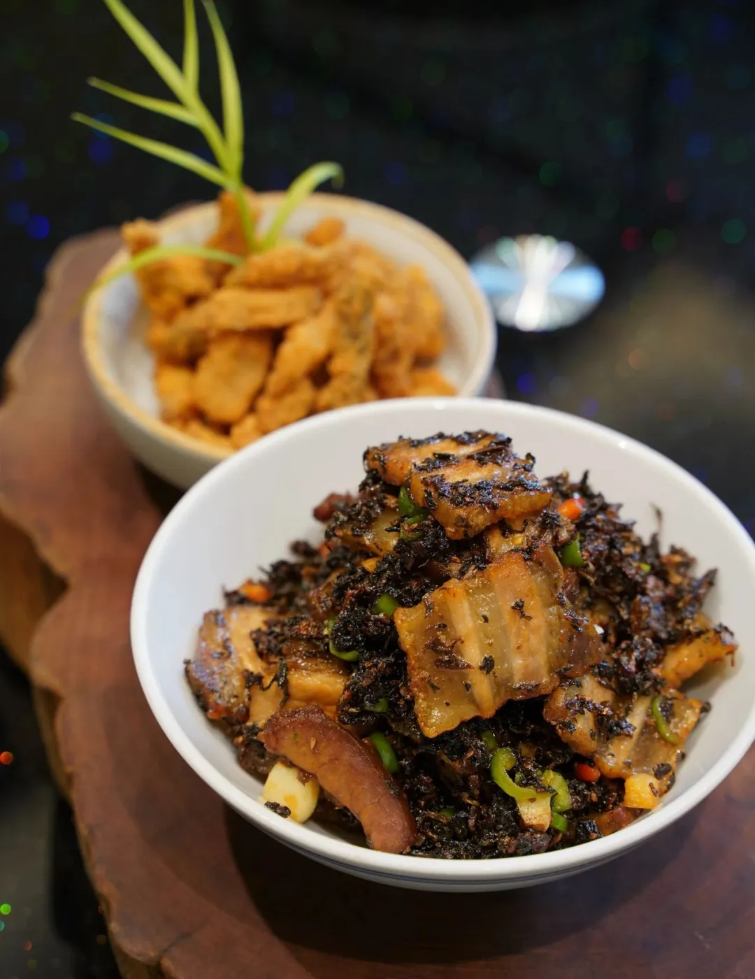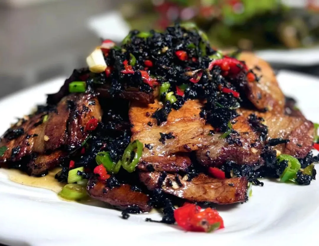 梅干菜是浙江人的“老熟人”,不过遂昌的梅干菜还和其他地方的不太一样,更强调干香。梅干菜入锅炒熟、盛出摊凉再装入缸中,煮熟的五花肉埋入梅干菜中待用。食用时再取出五花肉切片、同梅干菜一同翻炒即可。