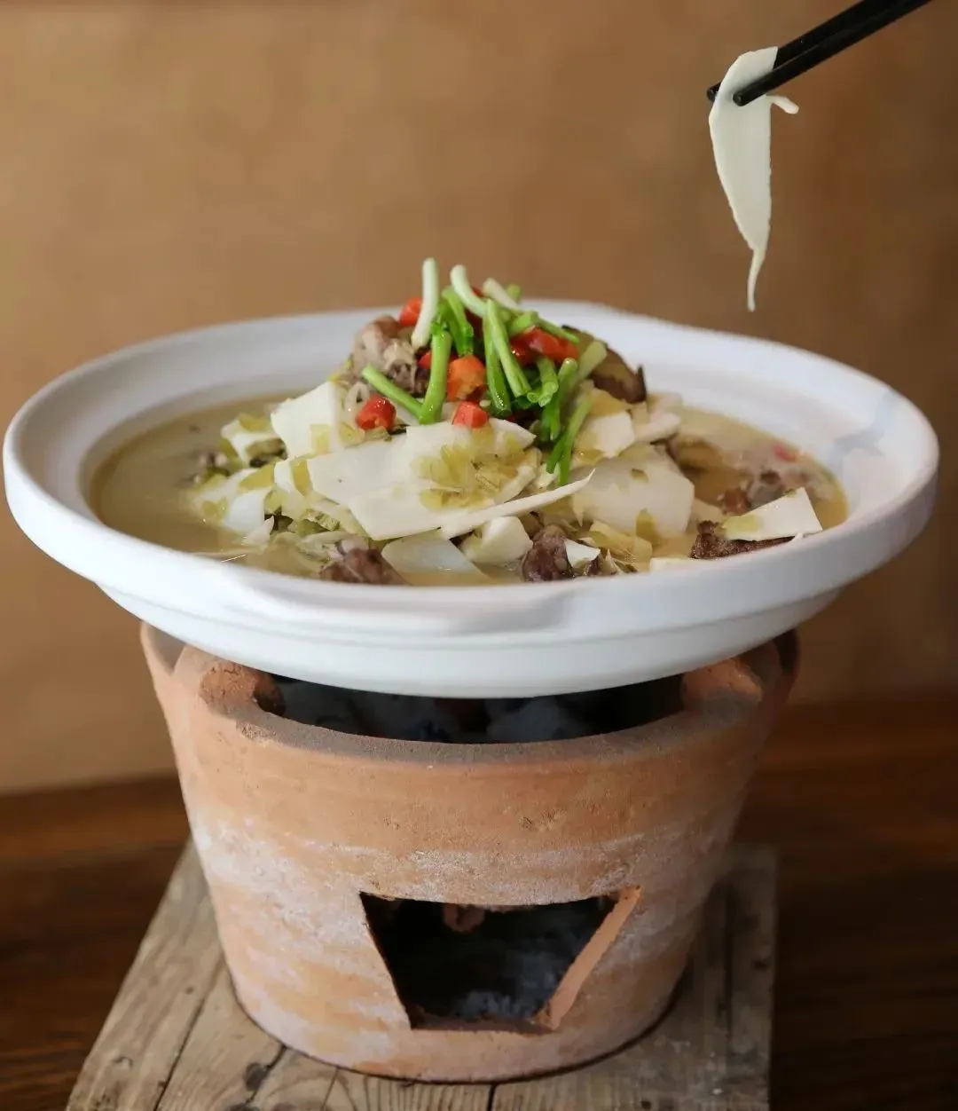 丽水·遂昌,一口炭火风炉煨着几代人的美食记忆,延续百年的烧制方法,慢煨出独具特色的山城风味。遂昌人讲究食在当季,时令食材汇于一锅,完美的搭配在口味上孕育了“1+1>2”的味觉与视觉效果,是你从没试过的惊喜味道。