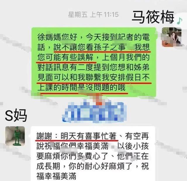 马筱梅曾明确告知S妈,只要不影响孩子上课,想见孩子随时都能见。