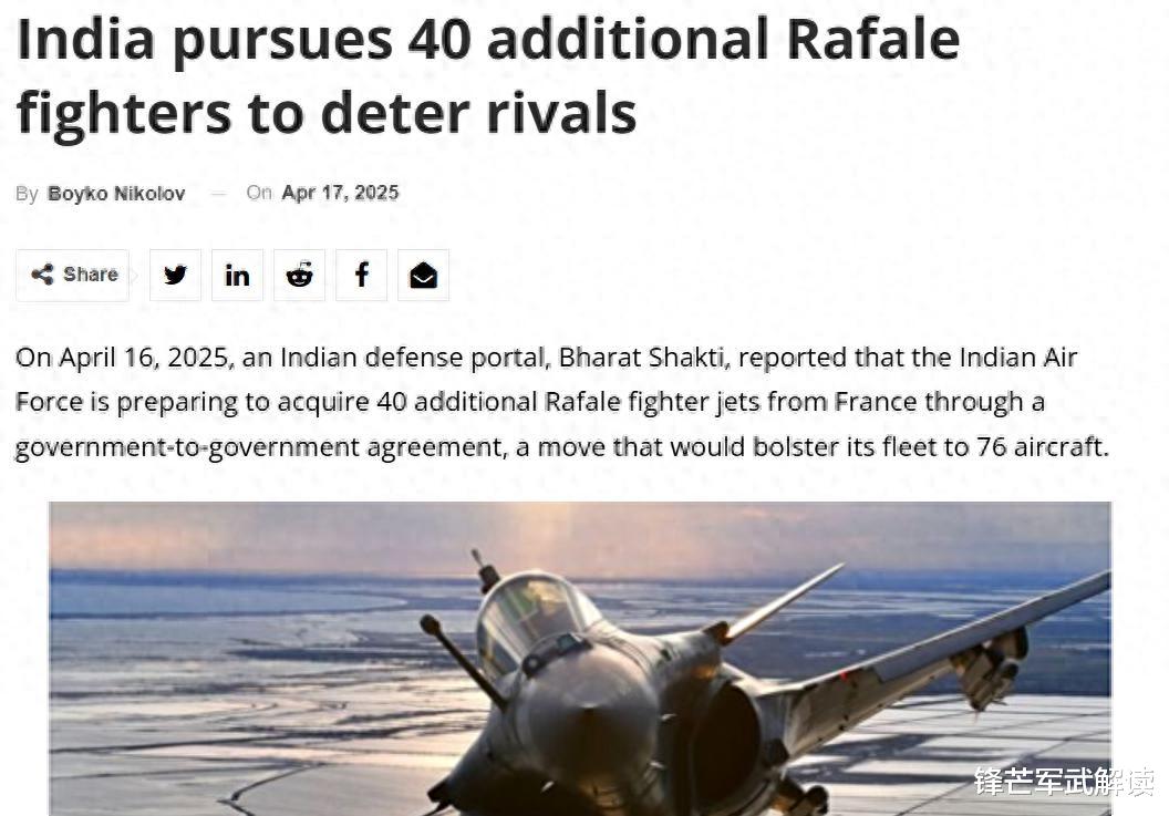 前段时间印度方面传来了印度空军计划增购多达114架阵风战斗机的消息,而且印度海军已经确定了要引进26架阵风-M舰载机,不过就在近日印度“Bharat Shakti”网站透露,印度空军确实有增购阵风战斗机的计划,不过并不是此前传言的114架,印度空军实际计划增购40架阵风战斗机。其实“Bharat Shakti”网站的这个消息看起来更靠谱一些,毕竟114架阵风战斗机的规模实在是太大了,印度空军增购阵风战斗机的目的就是为了对抗巴基斯坦空军歼-10CE战斗机,而巴基斯坦空军引进的歼-10CE数量为36架,如果仅仅是为了这些歼-10CE,印度空军没必要引进114架阵风,再说了阵风战斗机非常昂贵,引进114架印度空军也吃不消。