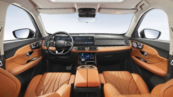 内饰方面,全新一代捷途X70 PLUS在现款的基础上也进行了一定升级。内饰采用热情似火的黑橙配色,轻奢百搭动感格调,加上极简化的中控台、水晶档把等,完美演绎高级感。独特的飞机引擎式空调出风口,更是实现了设计美感和实用性的和谐统一。同时,车内最引人注目的是双12.3英寸中控屏幕,与三幅式多功能方向盘相得益彰,提供了更为直观且舒适的操作体验。座椅布局方面,全新一代捷途X70 PLUS提供2+3的5布局和2+3+2的7座布局可选,并拥有62英寸超广角星际观景天窗。