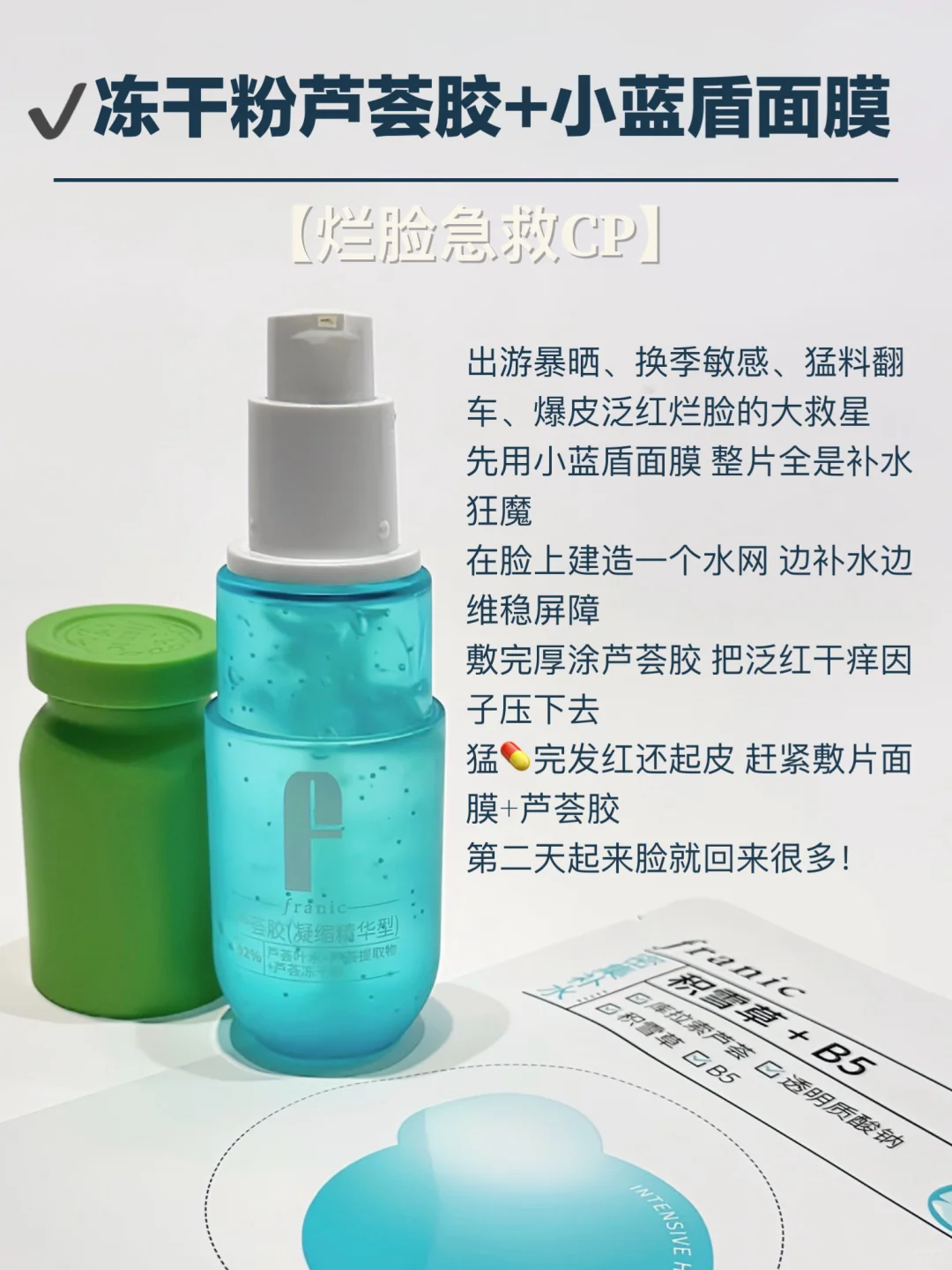 🔘 冻干粉芦荟胶+小蓝盾面膜