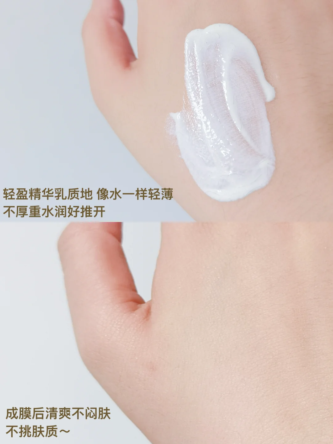 轻盈精华乳质地,不厚重水润好推开
