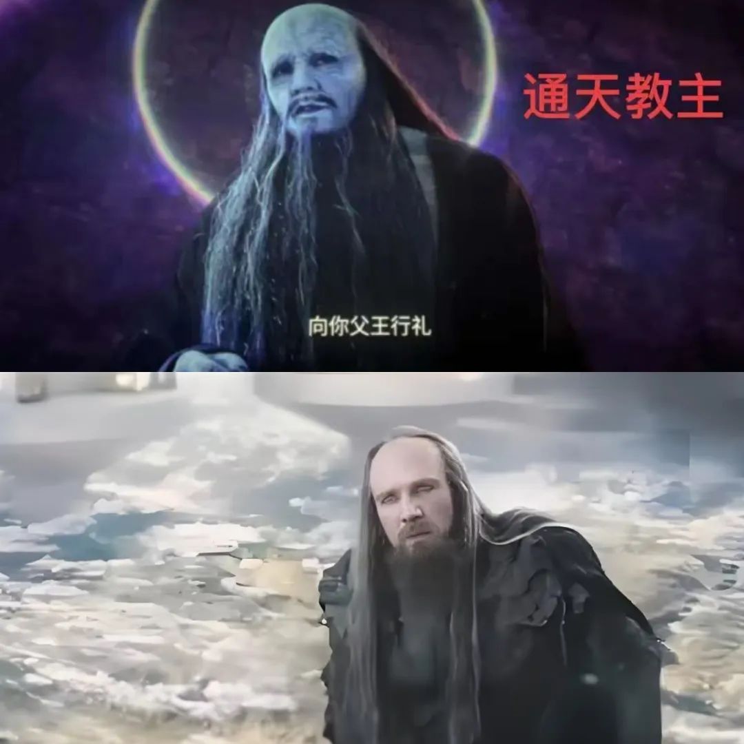 彩蛋里通天教主登场,秃头蓝肤宛如丧尸。整个人颓废不堪,比申公豹还要暗黑。和以往影视版的通天教主相比,简直就是画风突变。
