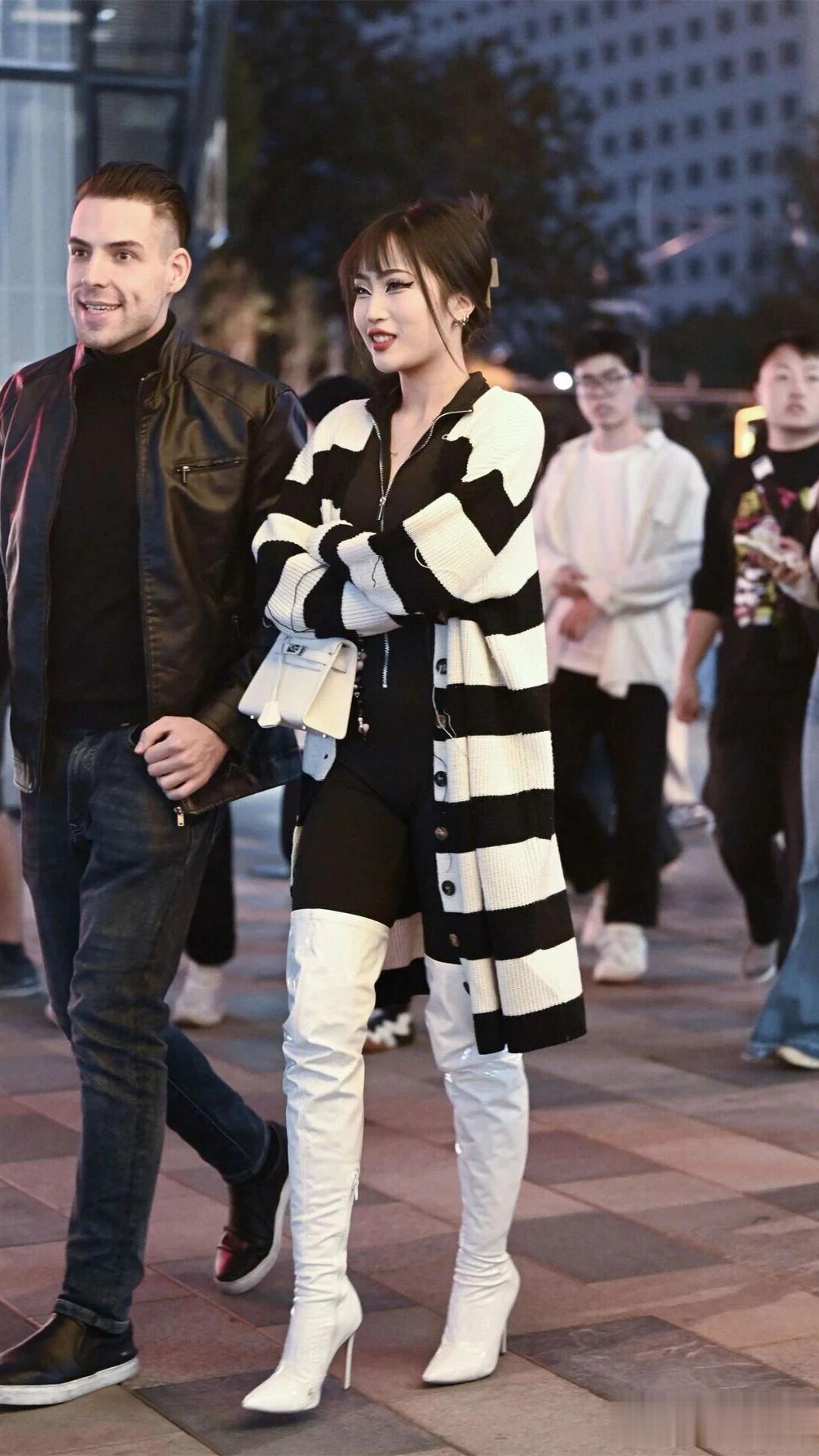 想象一下,一位美女穿着一件短款的白色羽绒服,搭配一双黑色的长皮靴,走在冬日的街头。短大衣的洁白与长靴的深邃形成鲜明的对比,却又和谐地融合在一起。她的步伐轻盈,每一步都像是在演绎着时尚的旋律。这种搭配不仅凸显了她的身材比例,更展现了她的个性与品味。