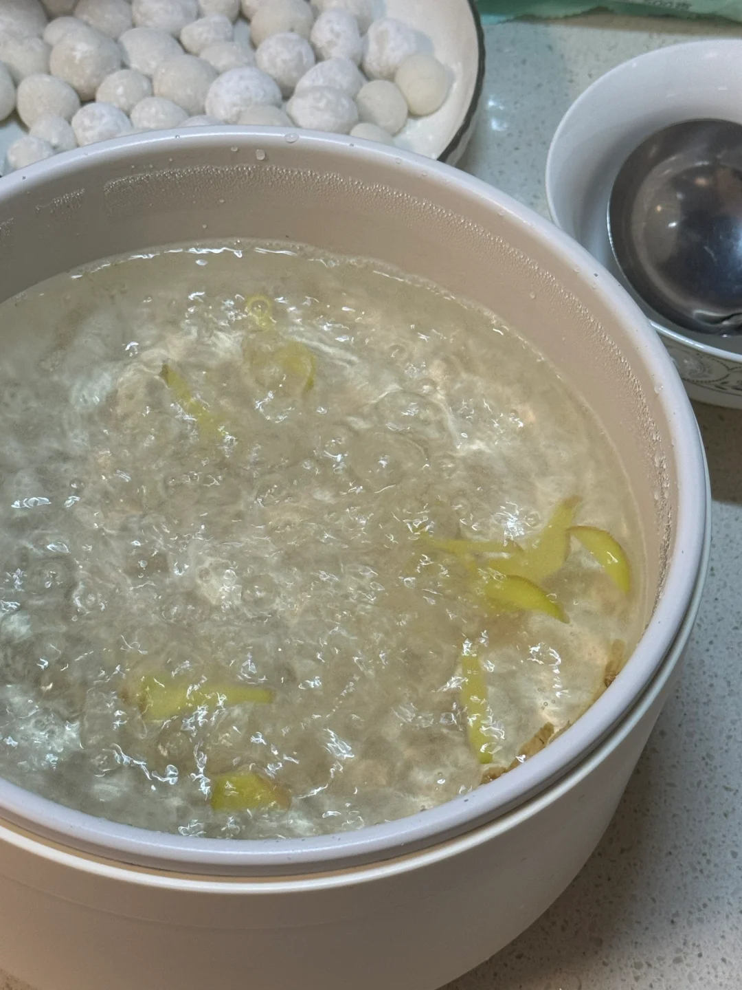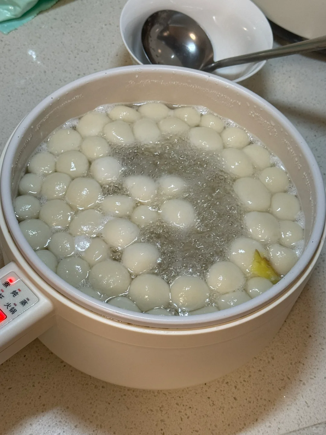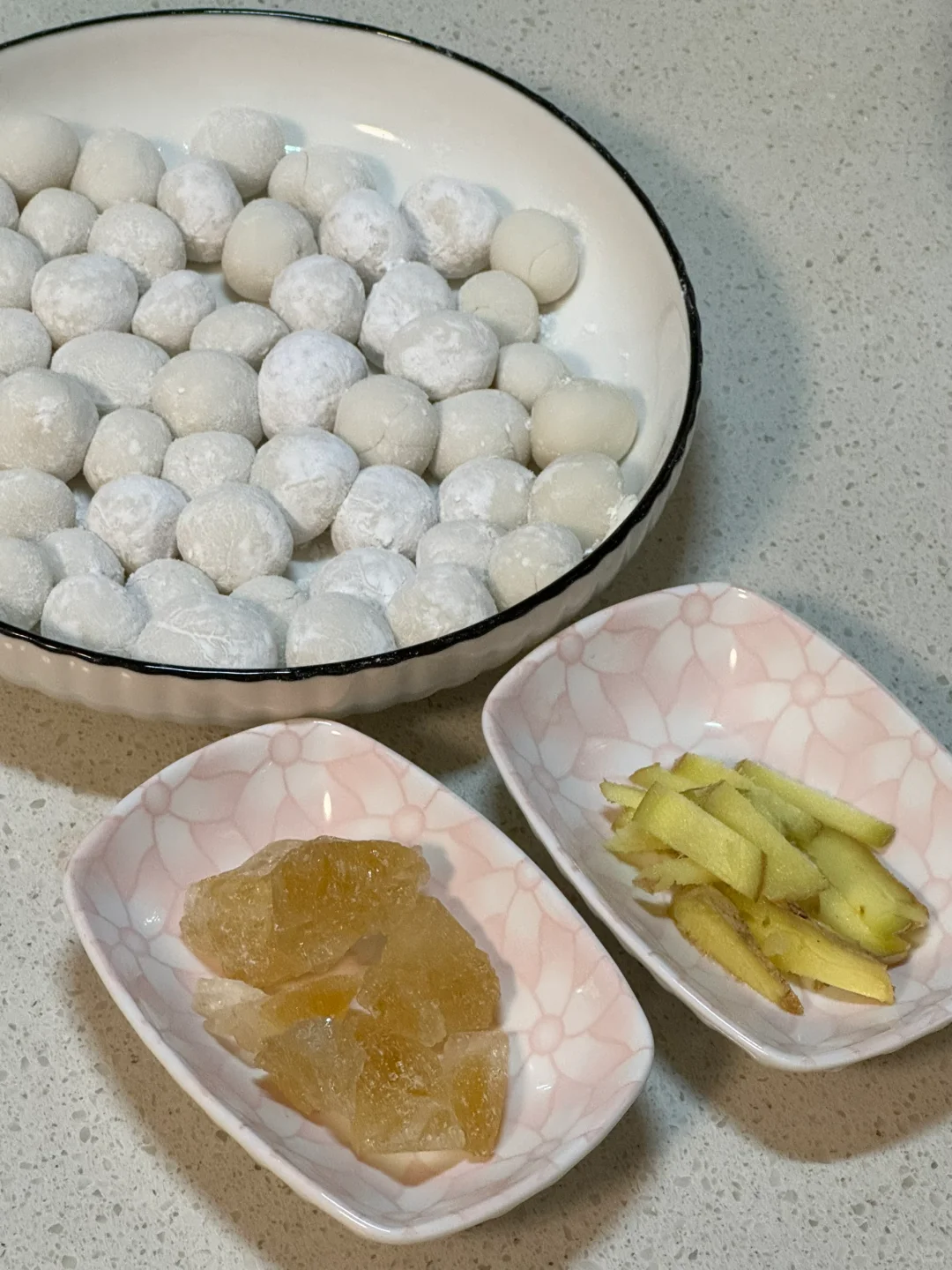 🌷食材:糯米粉,细砂糖,姜丝,黄冰糖。 🌷做法:1.糯米粉、细砂糖放入碗中,分次加入温开水,用筷子搅拌成絮状。 2.揉成面团,搓成一个个小圆子。 3.小锅中加入水,把黄冰糖、姜丝加进去煮开。 4.水煮开后,加入小汤圆,煮至浮起,姜汁小汤圆就完成啦[赞R][赞R][赞R] 🌷宿舍小锅就能做,糯叽叽的小汤圆真的好好吃☺️