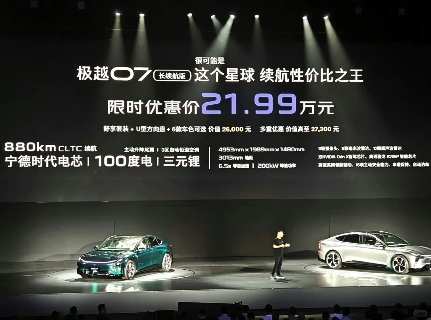 19.99万的起价,极越足够诚意…… 更何况还有个100度电池的0...
