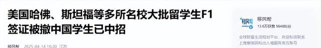 3. 移民帮:美国哈佛、斯坦福等多所名校大批留学生F1签证被撤中国学生已中招 2025-04-14