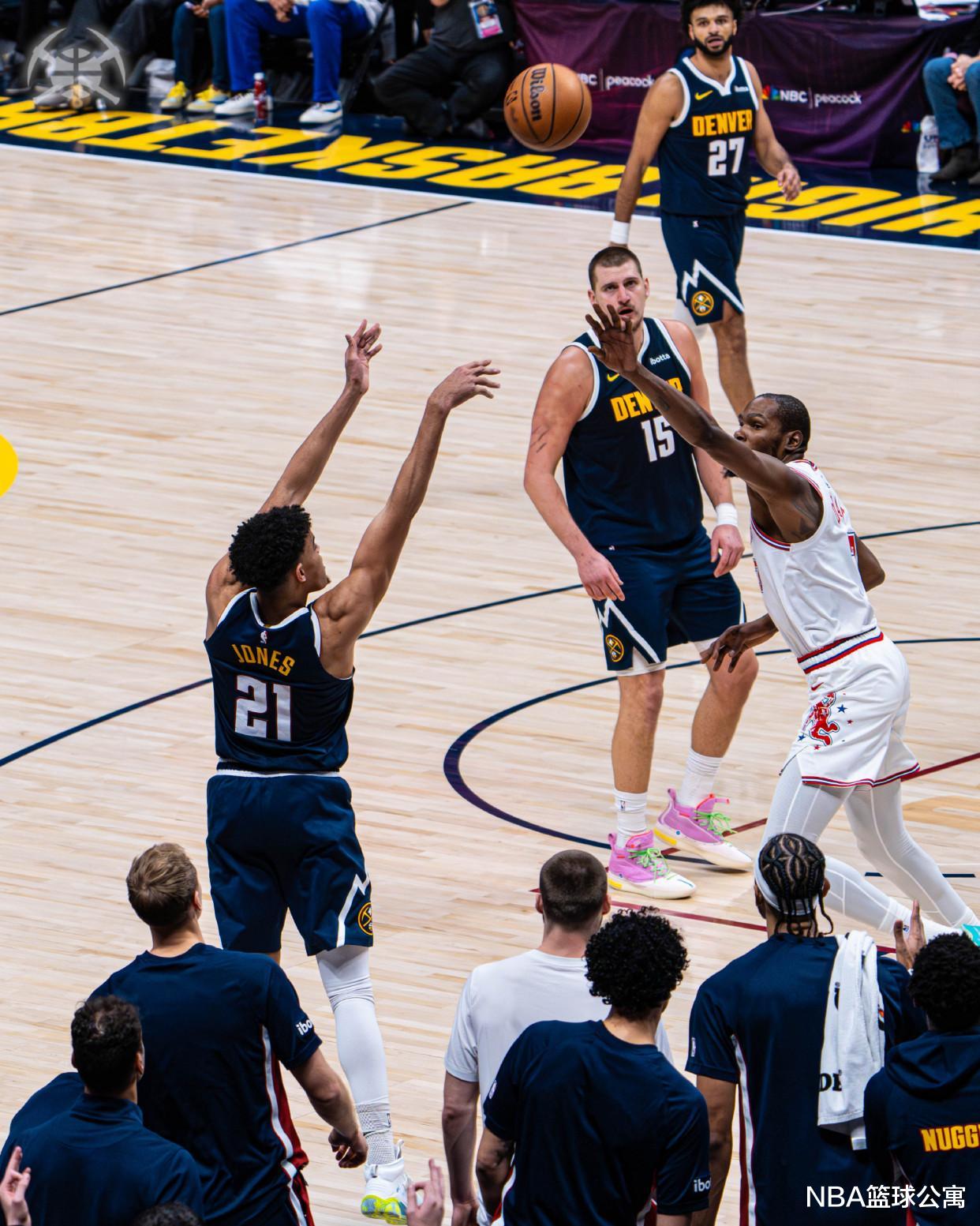 约基奇、谢泼德在外线对轰,比赛进入白热化阶段。约基奇助攻琼斯轰进3分球,杜兰特远投得分还以颜色。穆雷2罚1中,申京勾手得分,距离终场仅剩2.3秒,掘金落后1分并请求暂停。小哈达威被阿门汤普森犯规,乌度卡挑战判罚失败,穆雷罚球命中。约基奇绝杀3分球不中,两队携手以117平打入加时赛。
