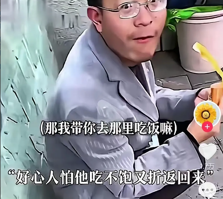 好心人原本已经走开,但又想起老师吃得那么急,担心他没有吃饱,山路又远,没吃饱怎么有力气回去?于是折返回来,邀请老师去餐馆吃饭。在好心人的盛情邀请下,老师终于答应一起前往。