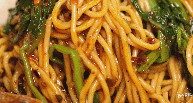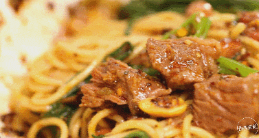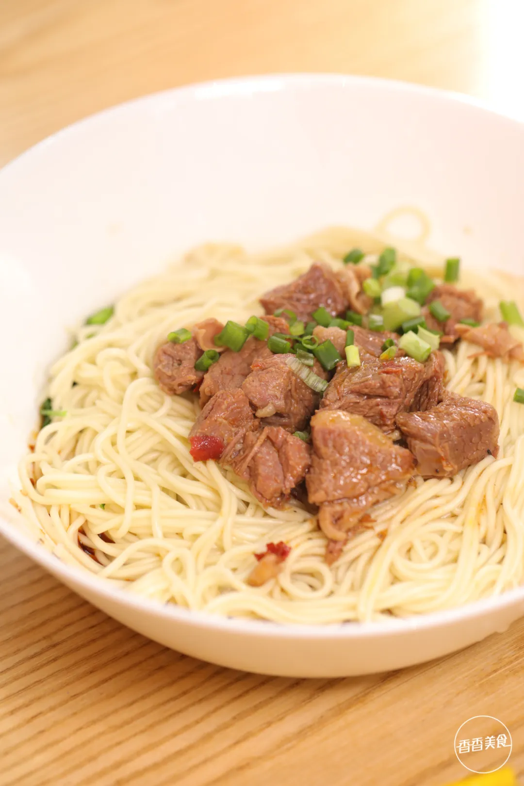 「牛肉拌面」牛肉拌面的魅力,吃货只需一眼就能感受到暴击。牛肉块儿大且分量多,油汪汪地卧在圆润洁白的面条上。估计不少吃货拿起筷子的第一刻,就是不由分说先来上一块儿牛肉解解馋。只需简单拌几下,圆润的碱水面就被染上了诱人的色泽。阵阵香辣气息带着热意扑面而来,馋的人直咽口水。