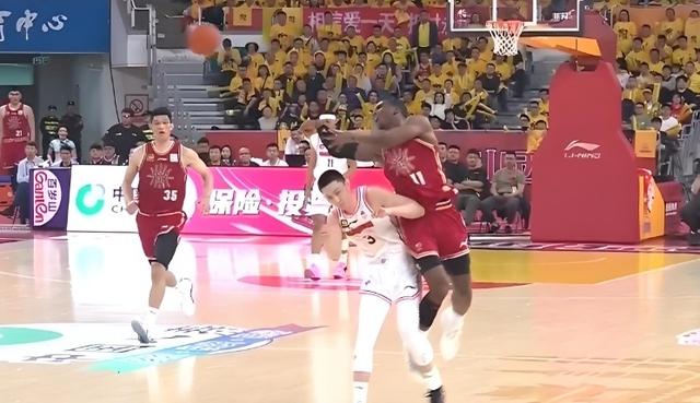 广东全场三次违体犯规全招呼在山西外援迪亚洛身上,第三节胡明轩那记空中撞人直接让对手横着飞出三米远。