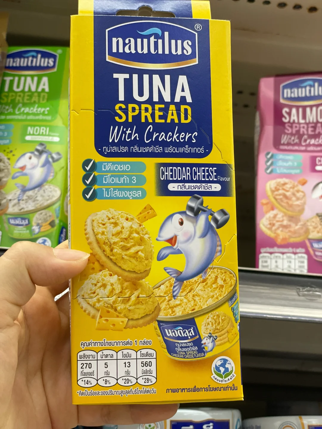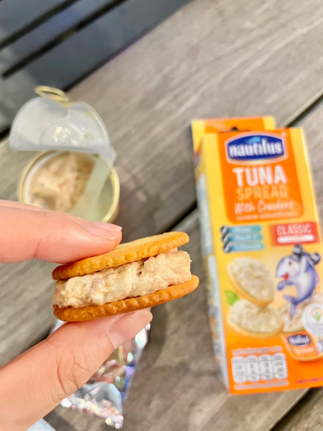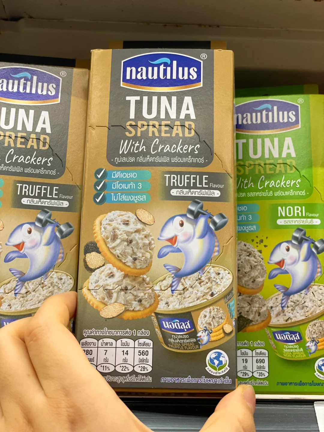 也忒好吃了! 大晚上的饿了 去楼下的711 随手拿了个健康小零食 原味是金枪鱼+蛋黄酱 酸酸甜甜的 夹在饼干中间 三明治🥪吃法 一口一个美滋滋🤤 含有蛋白质和OMGEA 3 还不用担心会发胖 第二天索性把其他口味都买回来了 个人最喜欢黑松露和芝士口味✌🏻️ 在泰的宝子们一定要试一试!
