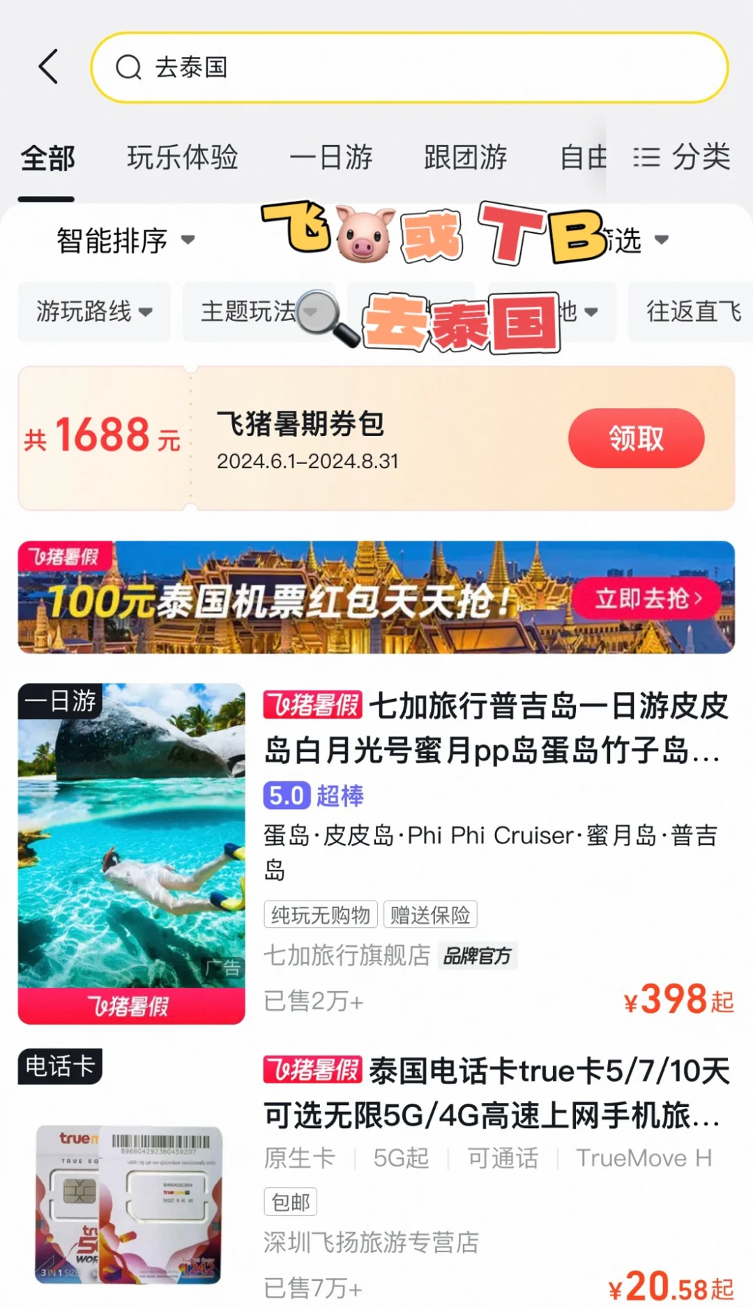 或者TB / 飞🐷 🔍“去泰国”就能看到活动啦