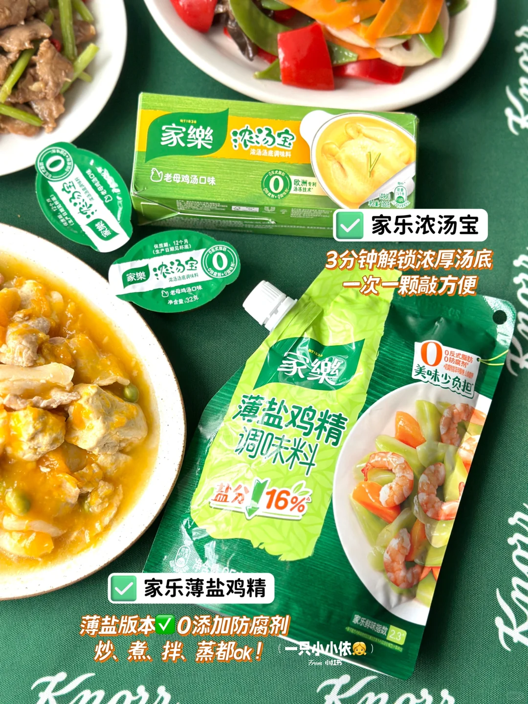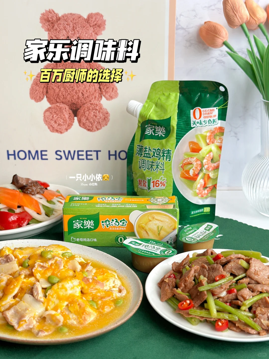 🍂秋天快来一起贴秋膘😋 分享6⃣️道快手家常菜,拌着米饭太香啦! ✨今天的家常菜做法简单家常,荤素搭配、营养开胃,大朋友小朋友都爱吃😄家庭聚餐、朋友小聚都🉑️哦! · ——✨超好吃家常菜合集✨—— · 🍲东坡豆腐煲 🐮芹菜炒牛肉 🍄白玉菇炒火腿 🥗荷塘小炒 🦐鲜虾鸡翅煲 🍗双椒鸡腿肉 · ✅食材及做法都在图片上啦,不明白的姐妹欢迎举手提问 ✅小朋友吃调料酌情减少,辣椒不放哦! · 入秋后,气温下降,食欲却上来了,在家为家人做一桌子美味,是件美好的小事✨这其中少不了家乐调味料的加持!秋天就得吃豆腐,鲜美十足,秘密就在于汤底用了家乐浓汤宝,3⃣️分钟就可以搞定两三个小时的炖汤,和外面餐厅一样好喝~宝宝也来夸我是专业大厨![大笑R] · 炒菜的调味搭子,非家乐薄盐鸡精莫属[害羞R]虽然是薄盐配方,但美味依旧,撒一点就提鲜,增鲜不盖原味👏🏻给宝宝吃也放心!加嘴包装干净卫生又防潮,用起来很方便!不愧是百万厨师的选择🧑‍🍳 ·