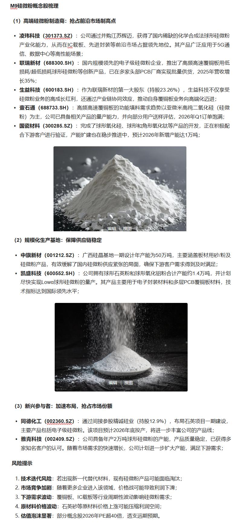 M9硅微粉技术升级逻辑分析,行业内部资料,2026年各上市公司年报及投资者互动平台(联瑞新材、生益科技、国瓷材料等)中信证券研报:《硅微粉行业深度报告》,2026年3月财联社、东方财富网:《硅微粉概念股有哪些?》,2026年2月