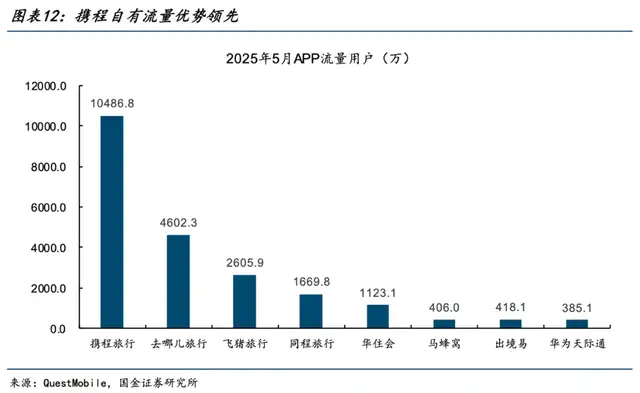 另一个问题是,携程用户粘性和忠诚度比较高,在同类应用服务中,自有流量优势明显。