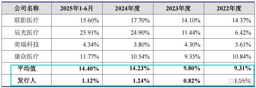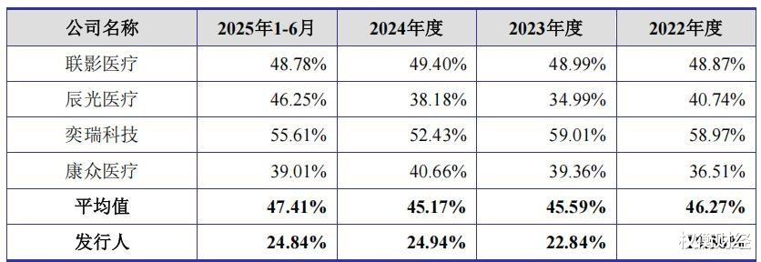 报告期内,健信超导主营业务毛利率分别为19.56%、22.84%、24.94%和24.84%,低于可比同行均值46.27%、45.59%、45.17%和47.41%。