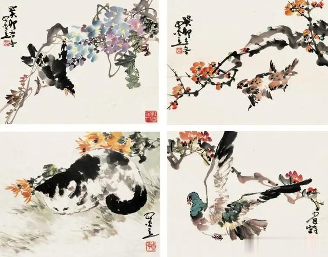 他作画不囿于门户,博采众长,笔下花鸟走兽皆跃然纸上,风骨铮铮又诗意翩跹。一羽翠鸟立于枝头,似能听见清啼;几丛水仙摇曳生姿,仿佛暗香浮动。更兼草书篆刻独步一时,金石之气透纸背。代表作《百寿图》《岩谷春光》等屡次参展,名扬海外,东南亚藏家争相珍藏。
