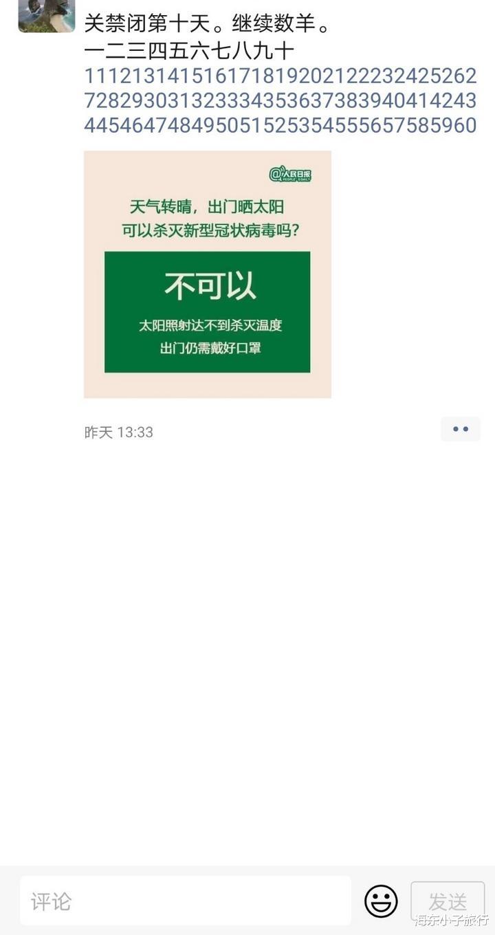 一直不敢出门,这对于一个喜欢旅行的人无疑是最大的折磨,这条数羊的朋友圈,能看出一直在家躲避疫情人的无聊,而此刻,这已经这种无聊和寂寞已经不是武汉人独有,是每一个延长春节假期在家里避难的中国人普遍的心态。今晨世卫组织宣布新型冠状病毒疫情成为国际公共卫生紧急事件。2020年的开端我们遭遇了当头一棒,截止到1月31日,武汉确诊病例2939人,死亡159人,这是武汉兄弟在二十多天前没有想到的,冰冷的数字后面是159个家庭遭遇的生离死别,天灾也好,人祸也好,这次疫情给我们造成的损失是无法估量的。愿这位兄弟挺住,也愿我们每一个中国人都能经受住这次考验,度过难关,每一个中国人都静静地在家中反思,不要再重蹈覆辙,别让悲剧再重演。我们只有坚强起来,前行,去重新开创更美好的未来。