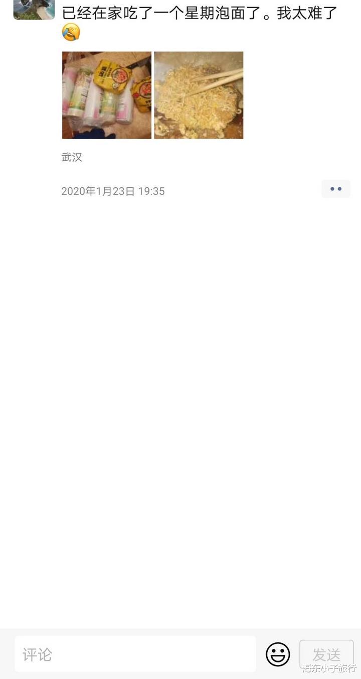 这是封城之后这位兄弟发的朋友圈,已经在家里吃了一个星期的方便面,“太难了!”