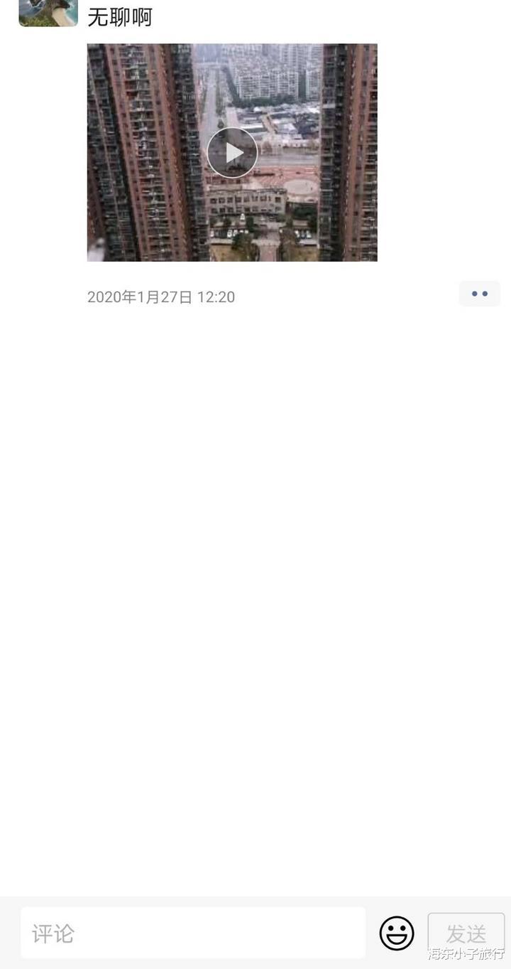 其实我的评论也有从一个武汉当地人探听信息的目的在,看到武汉人这样满不在乎,觉得自己杞人忧天,也就没有继续发表评论,后来,关于肺炎的新闻一度被故宫晒照的新闻所淹没,再后来的事情,大家都知道了。当新型冠状病毒导致的肺炎可以人传人,武汉有医务人员被传染的消息被报出来后,人们发生了恐慌,武汉封城之后,武汉民间方面的消息就少了,我一直关注着这位兄弟的朋友圈,看到了在这场灾难中一个普通的武汉人的喜怒哀乐。