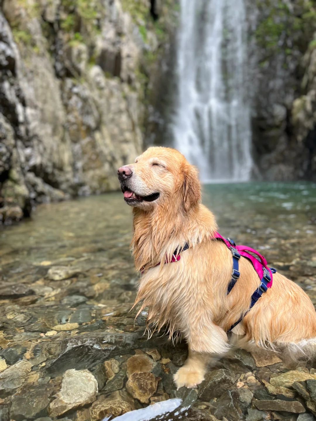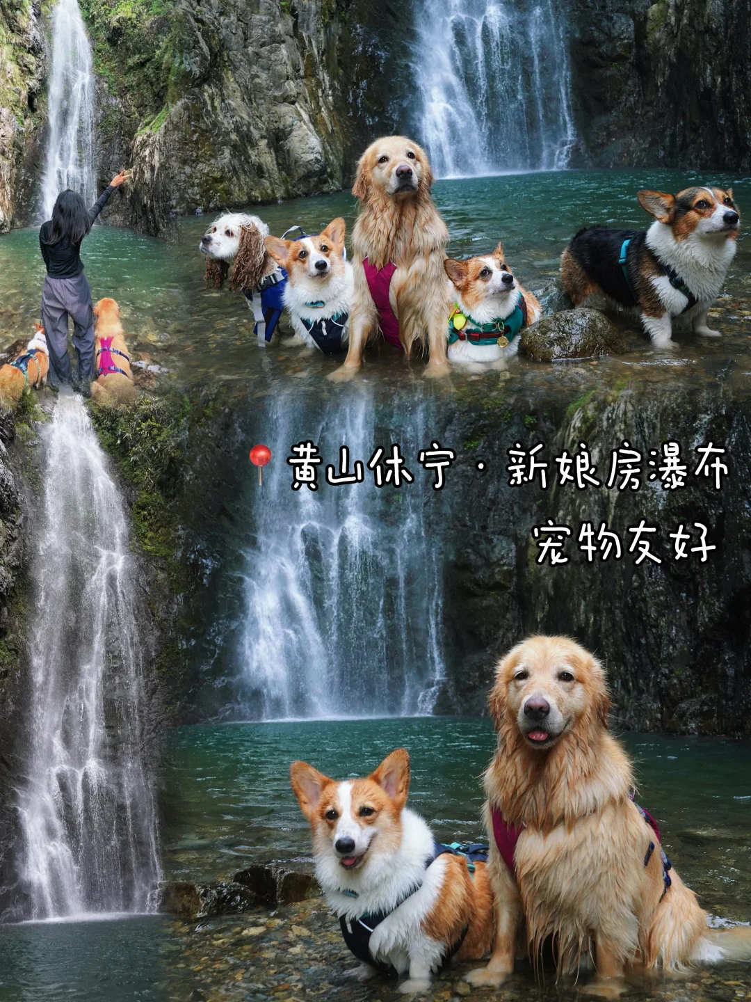 这几天都是三十五六度的高温天气小狗在城市里都玩不动了[笑哭R] 新娘房瀑布蛮友好的但是现在已经不算是小众啦,周六当天遇到了好多好多人工作日应该会好点,全程玩玩停停大概三个小时左右小狗们很开心人也不热路有点窄要注意安全顶上瀑布水流很大(总结等玩水旺季过去带小狗去会更好)