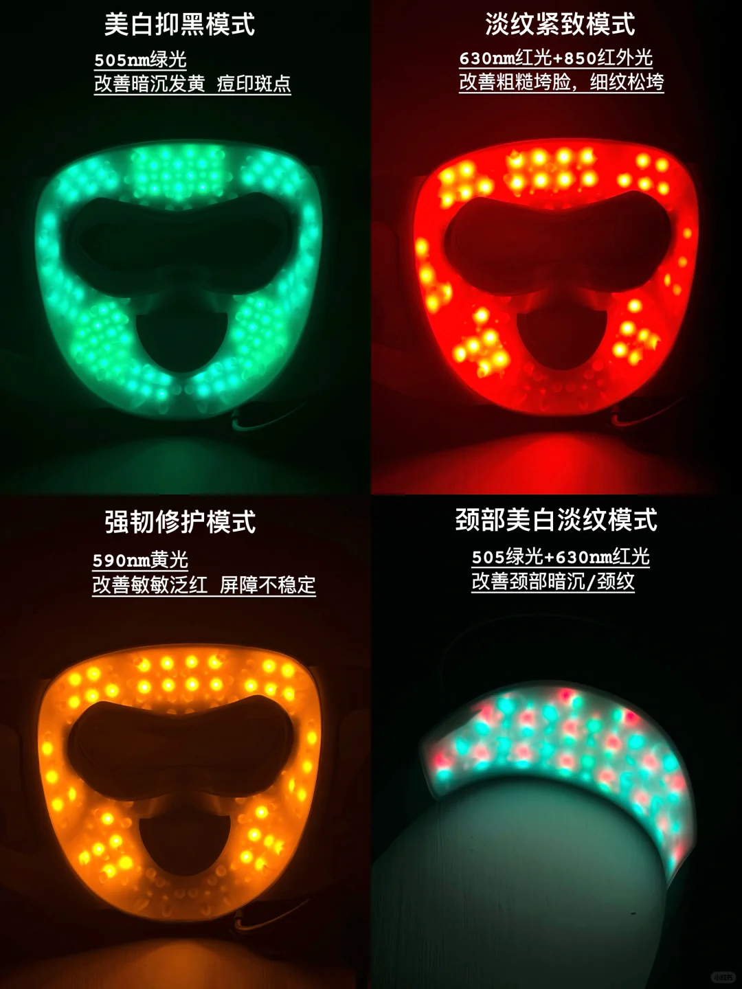 1️⃣绿光:美白抑黑 2️⃣红光+红外光:紧致淡纹
